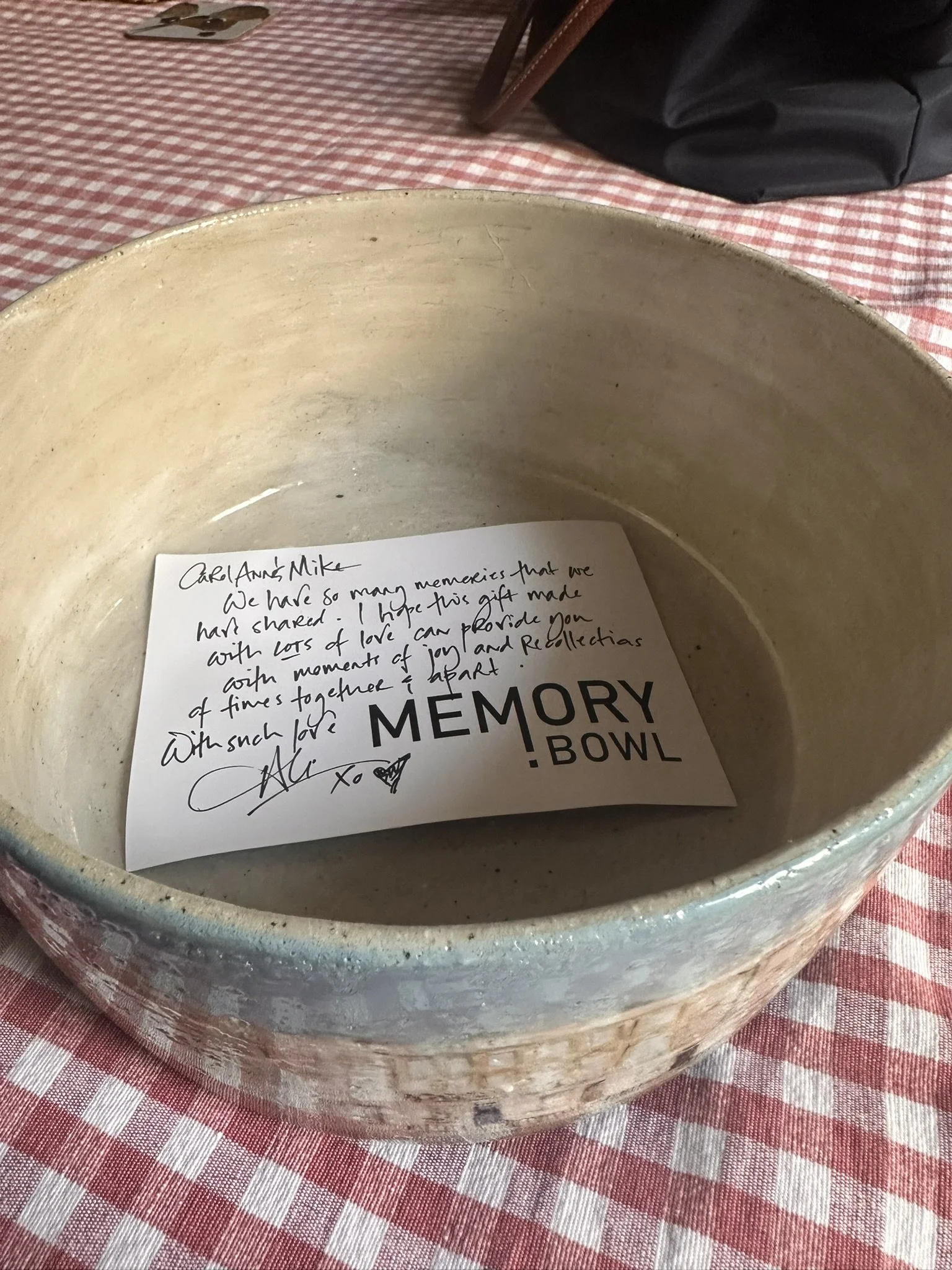 “To CC - Your gift is the most thoughtful and personal gift anyone has ever given me. You understand my connection to my land and the importance of it to me and my family. The memories in the pottery can be passed on for generations......it’s the best gift I have ever received from AA.”